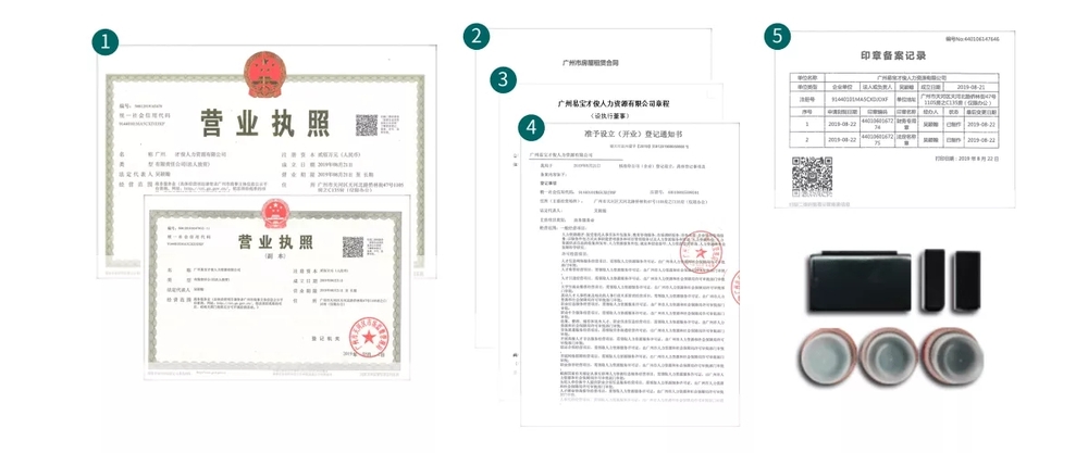 1、 新版营业执照正副本 2、公司租赁合同 3、公司章程 4、公司准予设立登记通知书 5、公司印章及备案记录